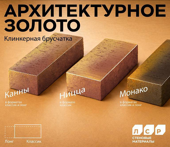 Тротуарный клинкер Канны золото ЛОНГ